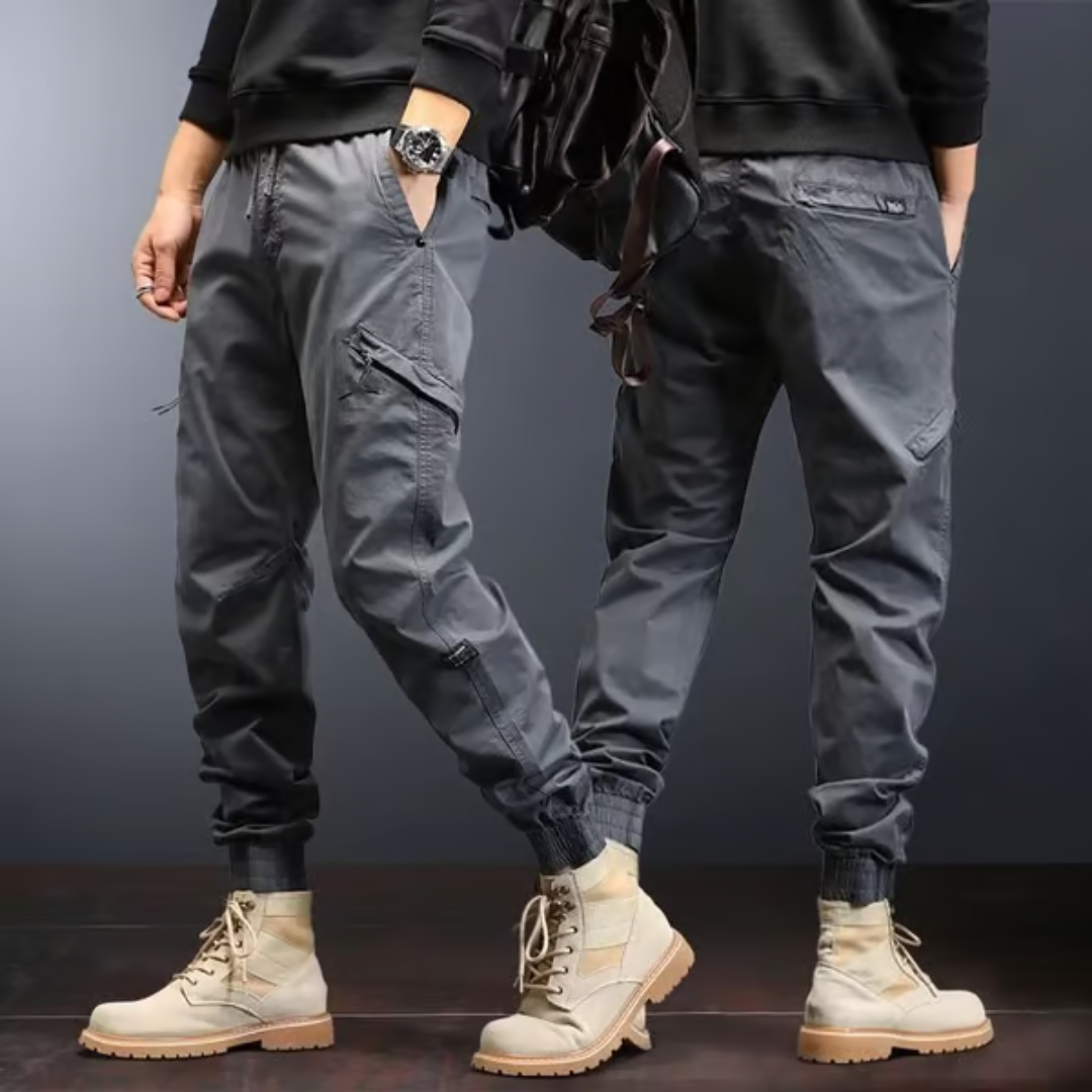 Estas calças casuais unem um design inspirado no visual retrô com a praticidade de vários bolsos, ideais para homens dinâmicos e estilosos.