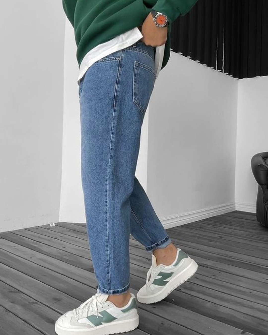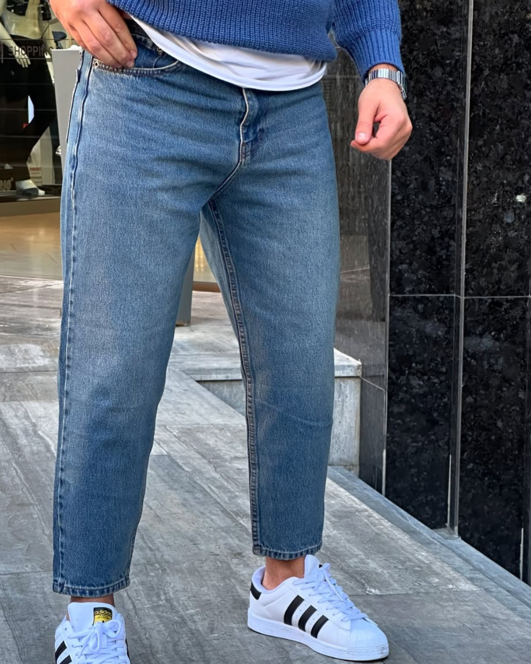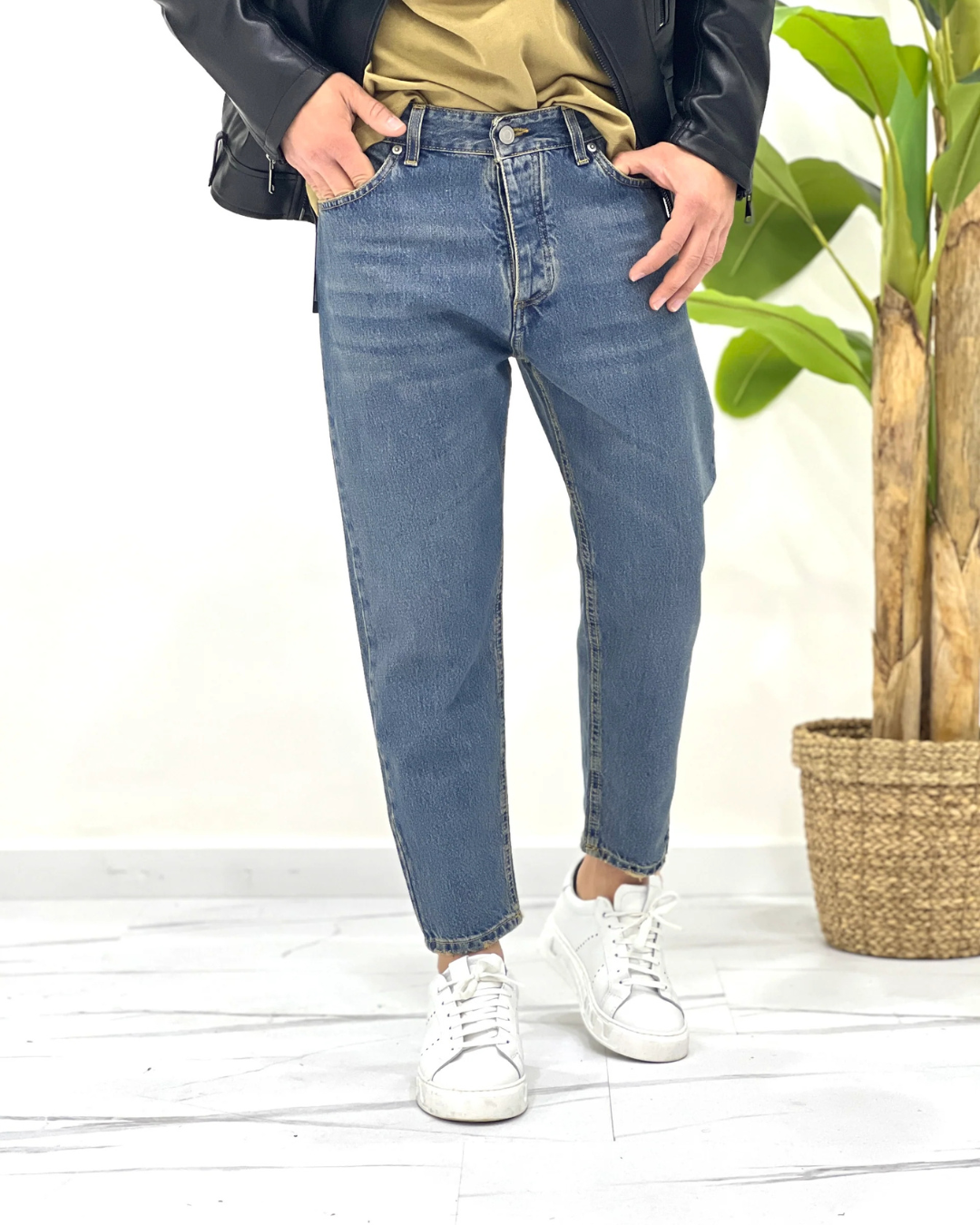 Este jeans combina um visual retrô com modelagem moderna tipo carrot fit, ideal para quem valoriza autenticidade e conforto. Perfeito para compor looks urbanos com personalidade.