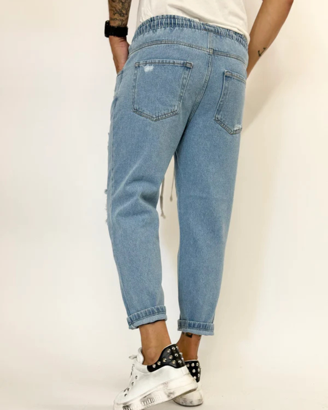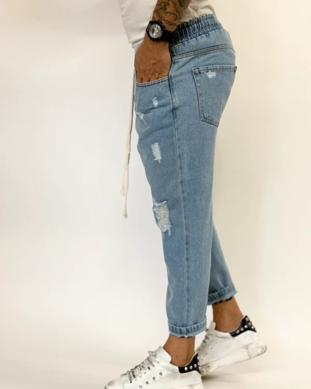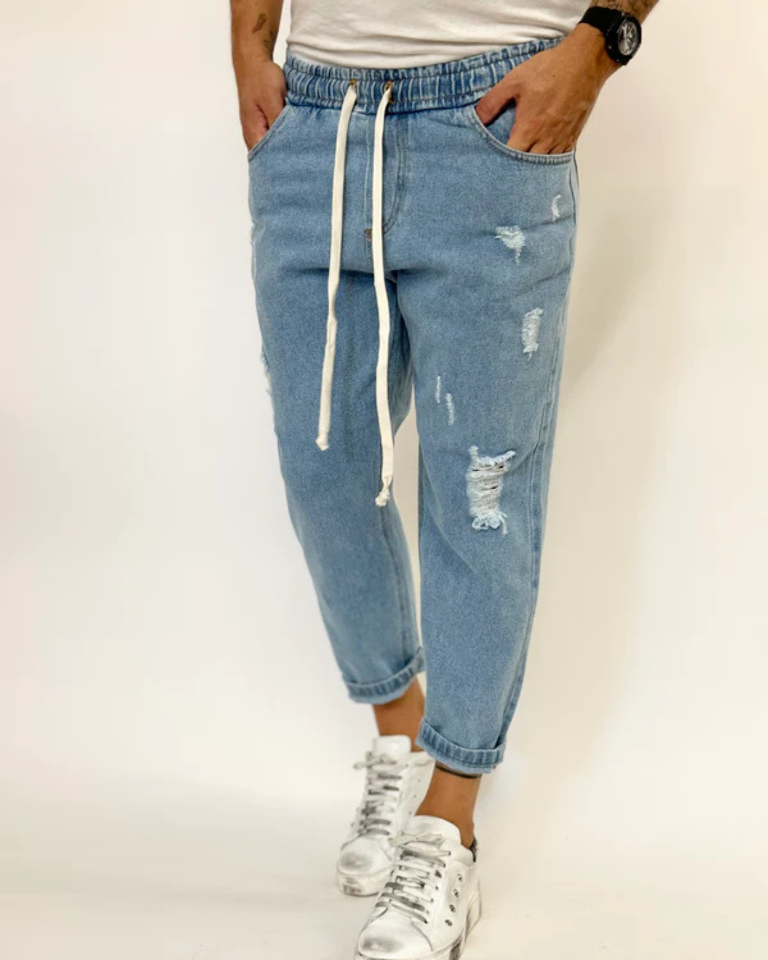 Estas calças de ganga cropped combinam design contemporâneo com detalhes rasgados, criando um visual urbano e ousado sem comprometer o conforto.