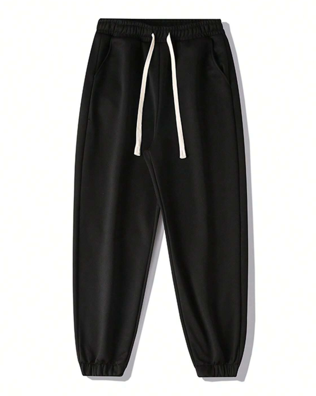 Calças de Malha Polar com Cintura Ajustável e Bolsos Laterais para Homem