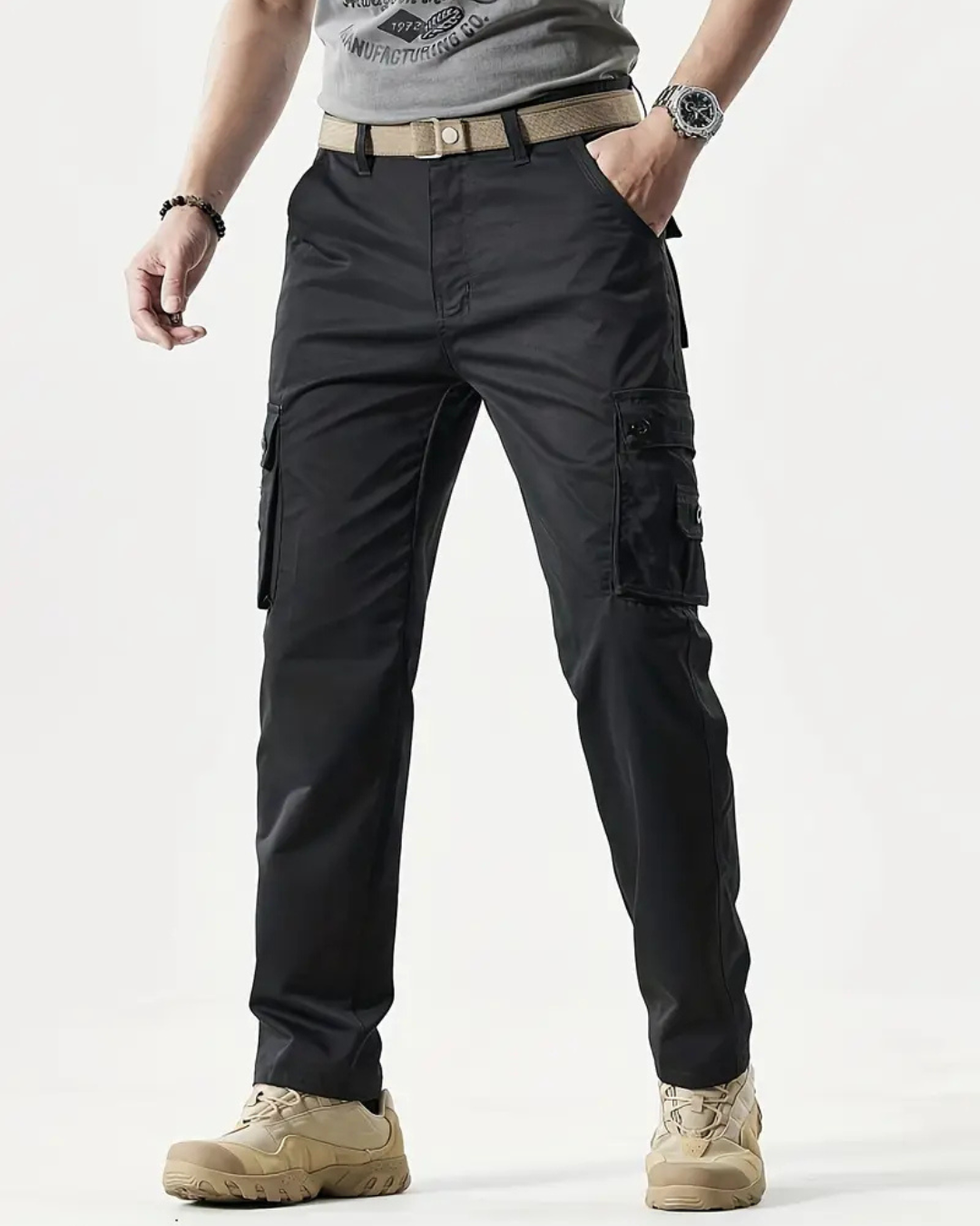 Estas calças casuais unem um design inspirado no visual retrô com a praticidade de vários bolsos, ideais para homens dinâmicos e estilosos.