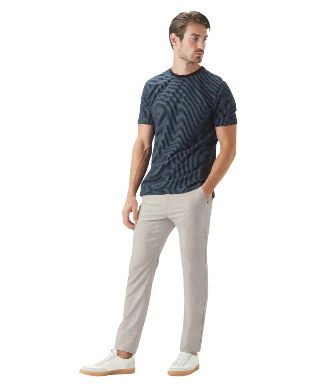 Estas calças justas e elásticas foram projetadas para acompanhar o seu dia a dia. O tecido flexível oferece total liberdade de movimento sem abrir mão do estilo. O seu design elegante garante um corte direito que é aerodinâmico sem ser ajustado, proporcionando um visual refinado sem exagerar as formas do corpo.