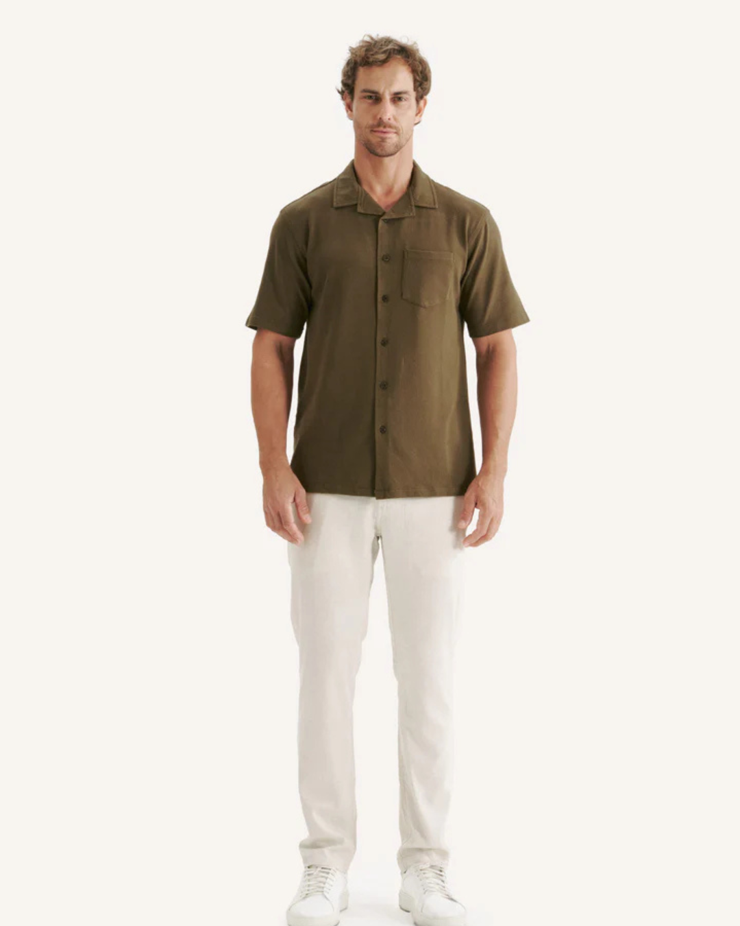 Design versátil ideal para looks de verão ou entre estações. Conforto e estilo numa única peça. Perfeita para combinar com calções ou calças de linho.