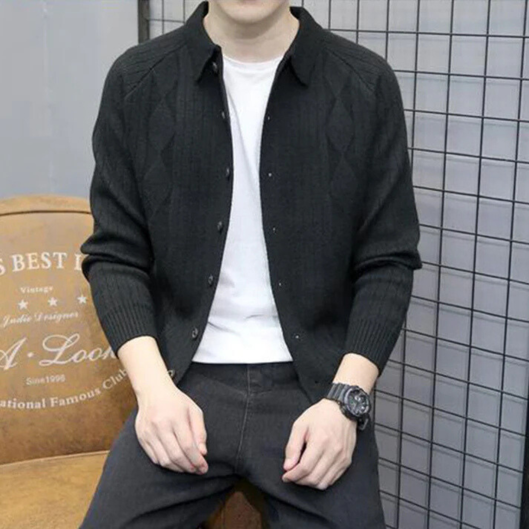 Casaco de Malha Clássico com Design Elegante de Lapela para Homem
