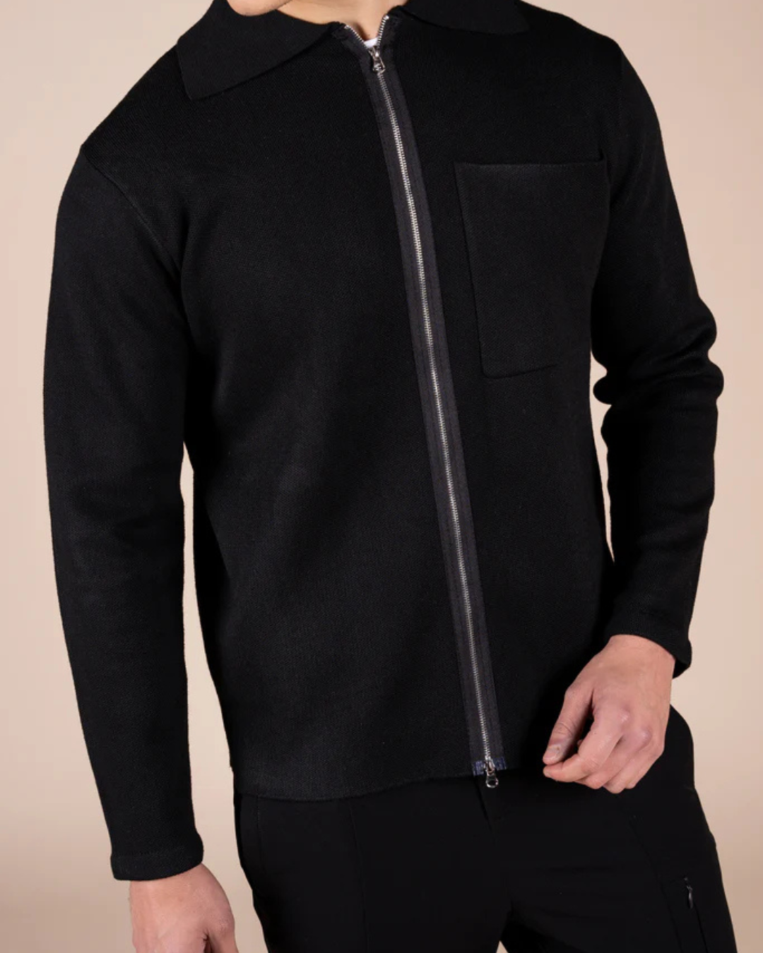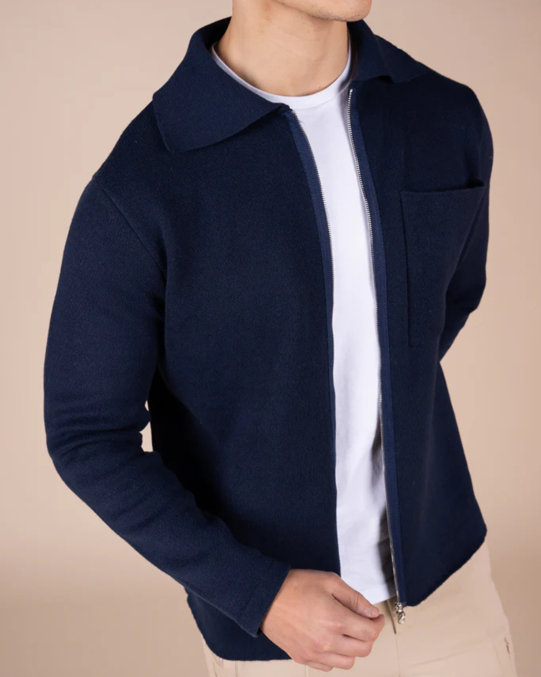 Este Casaco apresenta um design clássico com fecho de correr, proporcionando praticidade e um visual moderno, ideal para diversas ocasiões.