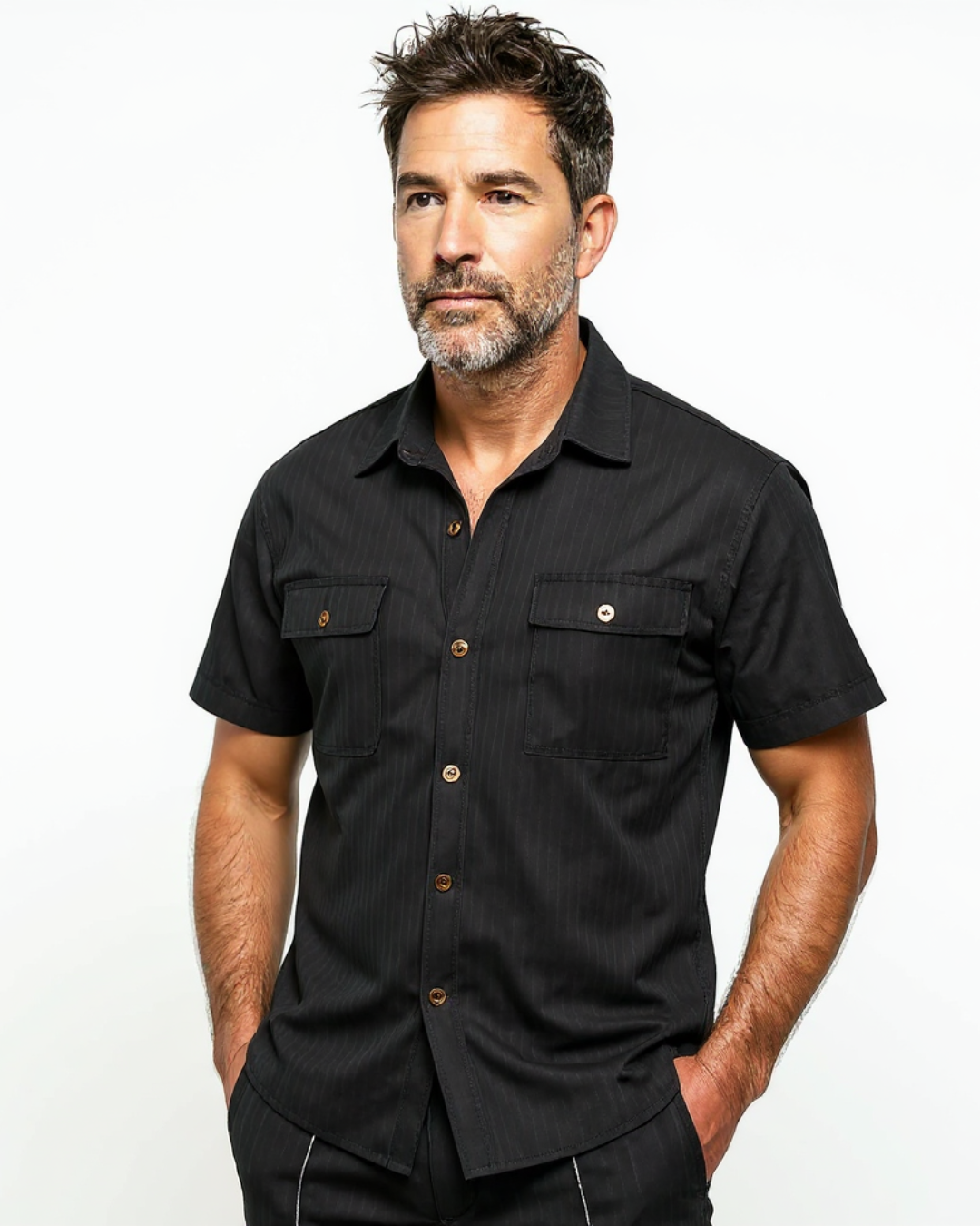 Um design simples, mas refinado, que se adapta a qualquer ocasião informal. A textura natural das suas fibras oferece respirabilidade, enquanto o seu corte confortável permite liberdade de movimentos e um visual sempre impecável.