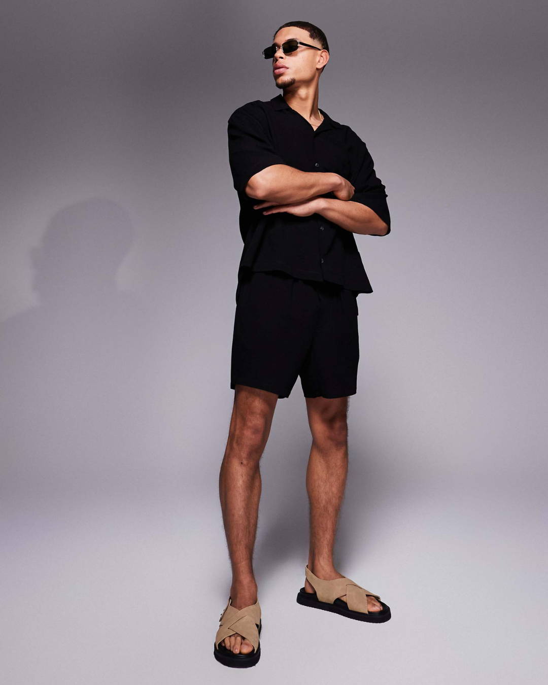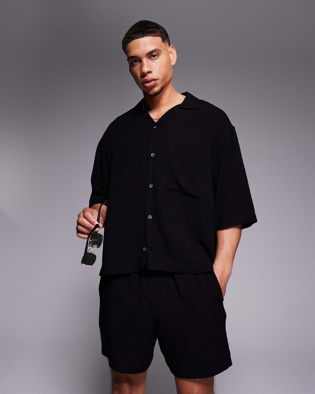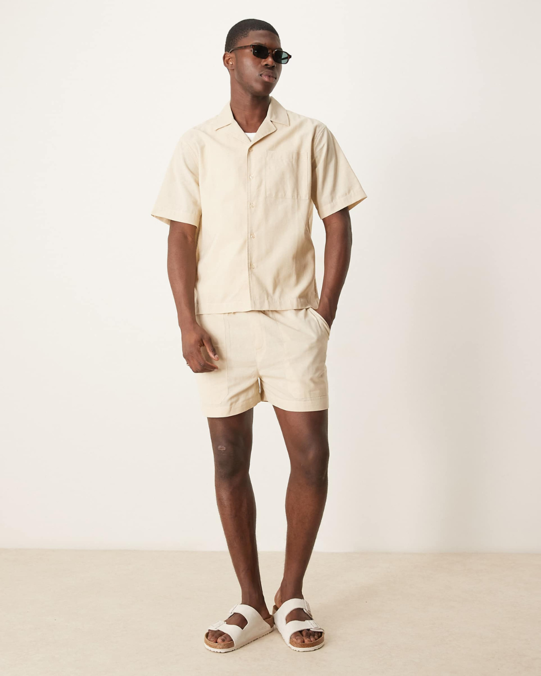 Conjunto de camisa e calções concebido em tecido macio para homem