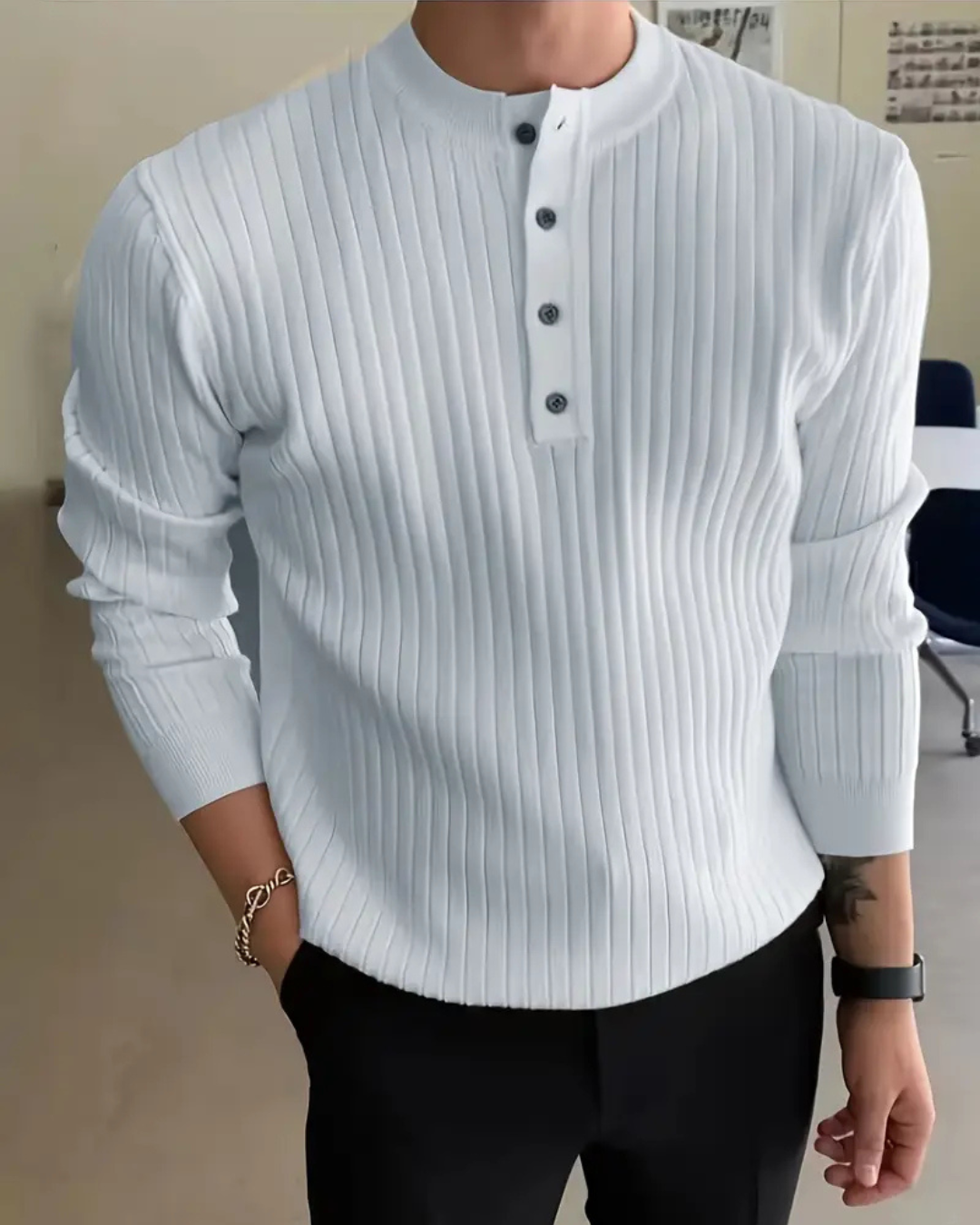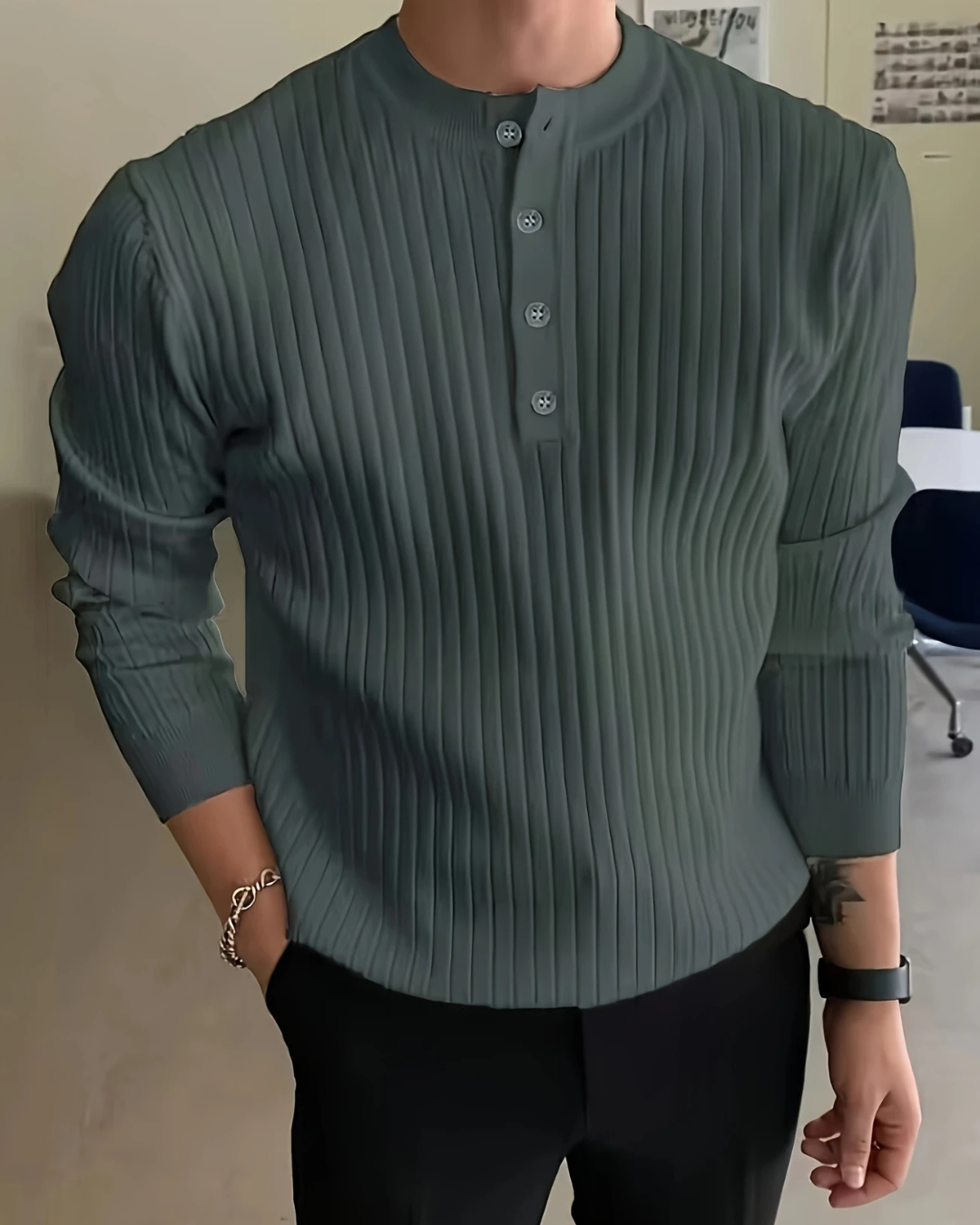 Este jersey de corte justo foi projetado para realçar a silhueta masculina, oferecendo um visual moderno e sofisticado para qualquer ocasião.