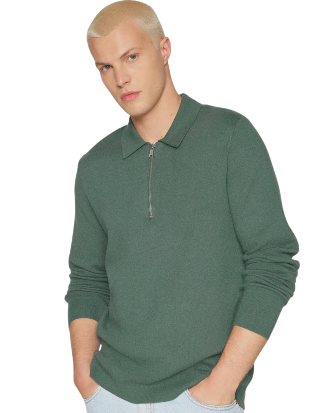 Pólo de Manga Comprida com Fecho de Correr para Homen