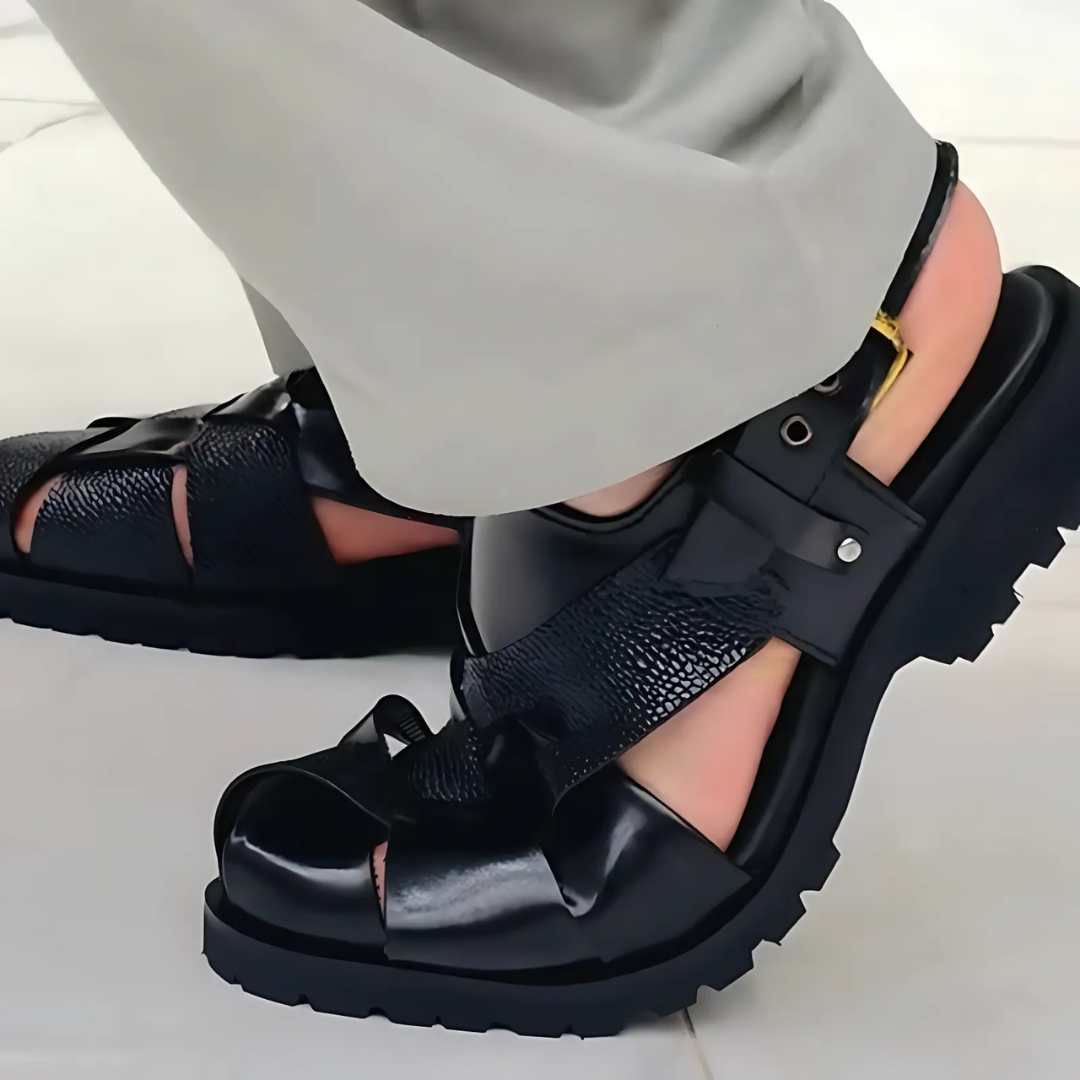 Seja para o escritório, uma reunião casual ou uma saída à noite, estes sandálias romanas combinam a funcionalidade com uma elegância discreta. Uma peça essencial no guarda-roupa de qualquer homem moderno.