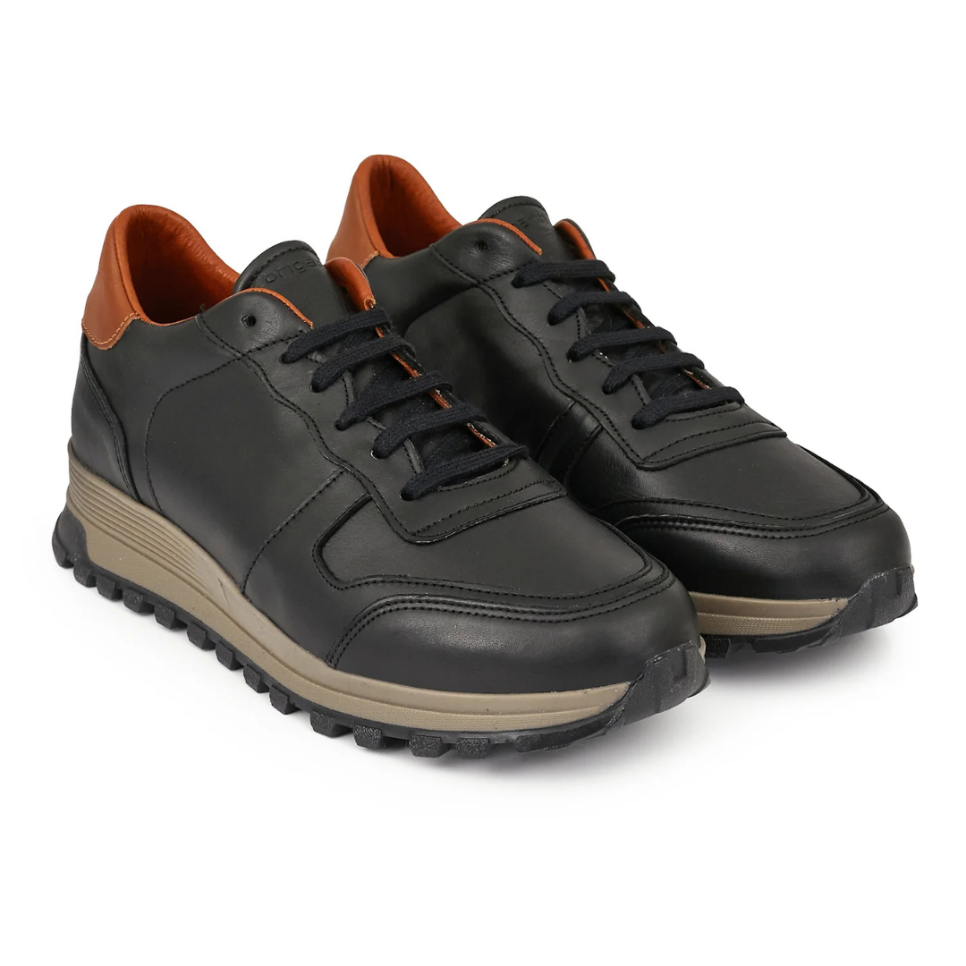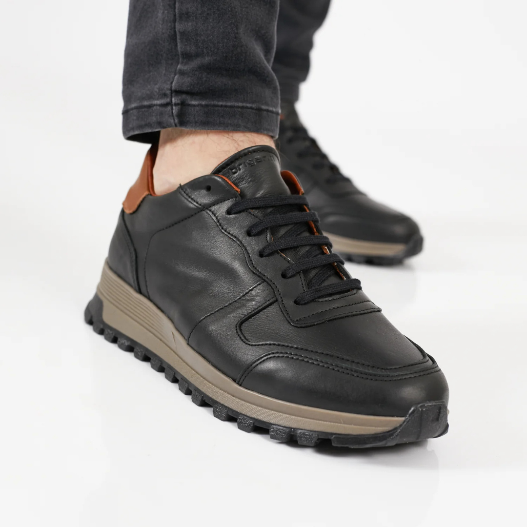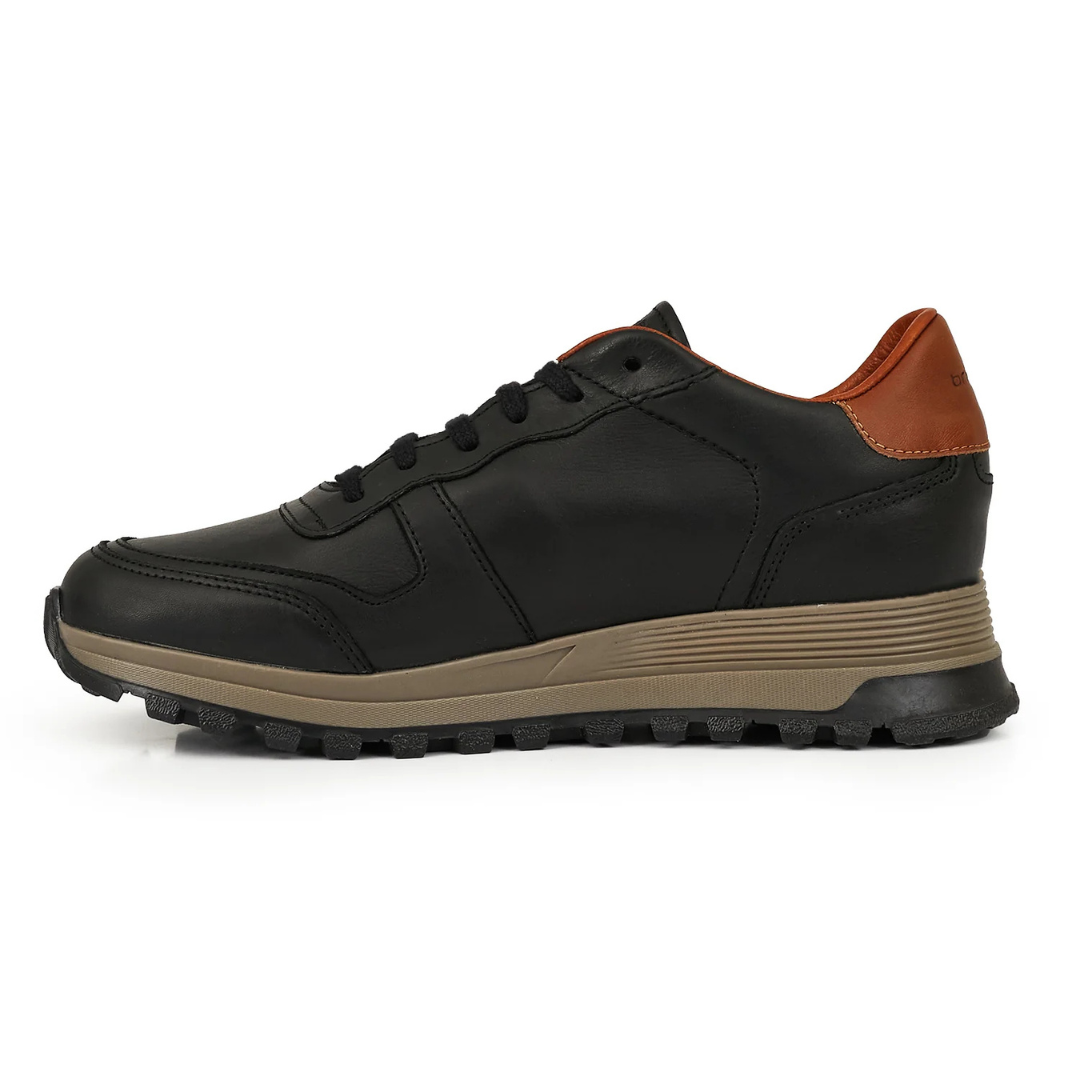 Tênis de Couro Preto com Detalhes em Castanho para Homen
