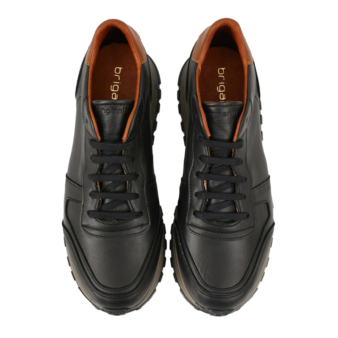 Combinando couro preto clássico e detalhes em castanho, estes tênis são a escolha ideal para um visual moderno e sofisticado.